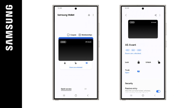 Ab sofort kann für ausgewählte Audi-Modelle ein Digital Key im Samsung Wallet registriert werden. Damit können Audi-Fahrer*innen und Nutzer*innen von Samsung Galaxy Smartphones, darunter das Galaxy Z Flip6 und Galaxy Z Fold6 sowie die Galaxy S24-Reihe, ihre Fahrzeuge bequem mit ihrem Smartphone verriegeln, entriegeln und starten ohne den physischen Schlüssel bei sich tragen zu müssen.
