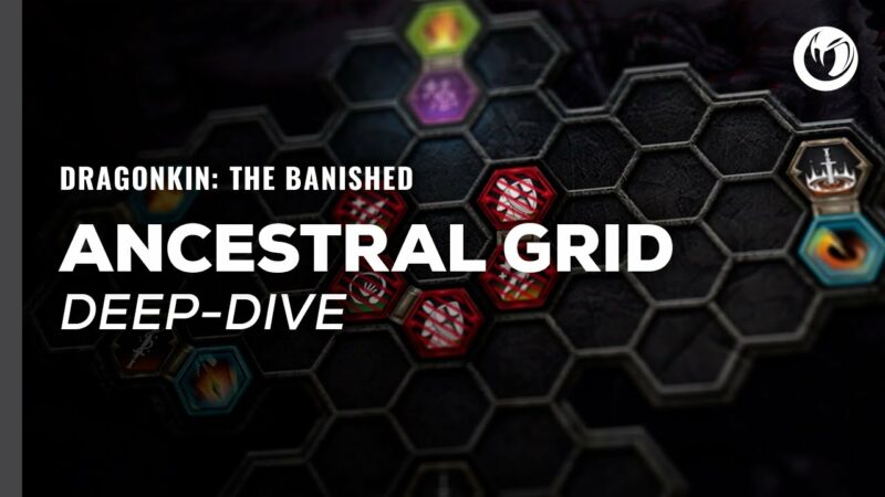 Das Skillsystem von Dragonkin: The Banished basiert auf dem Ancestral Grid, einem Interface, das sich gleichzeitig mit dem Charakter weiterentwickelt. Jede Klasse hat ihr eigenes Raster, das sich mit dem Stufenaufstieg erweitert. Auf diesem Raster werden Fragmente platziert: sechseckige Stücke, die Fähigkeiten oder Modifikatoren enthalten. Durch die Anordnung dieser Fragmente können die Spielenden ihren Spielstil anpassen. Fertigkeiten werden der Fertigkeitsleiste des Charakters hinzugefügt, während Modifikatoren die Effektivität der Fertigkeiten, mit denen sie in Kontakt kommen, erhöhen.