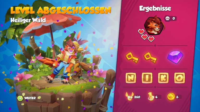 Um die Spitze der Insel zu erreichen, müssen die beiden ein paar Welten mit mehreren Leveln überwinden. Dabei ist das Grundkonzept ganz klassisch aufgebaut bei dem es für Niko und Luna heißt, sich durch verschiedene Bereiche der Insel zu Kämpfen, in denen es mehrere Level zu meistern gibt. Am Ende eines jeden Bereich wartet dann ein Boss Level mit einem entsprechenden Gegner auf euch, den es zu überwinden gilt.