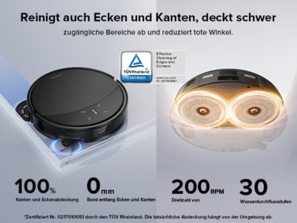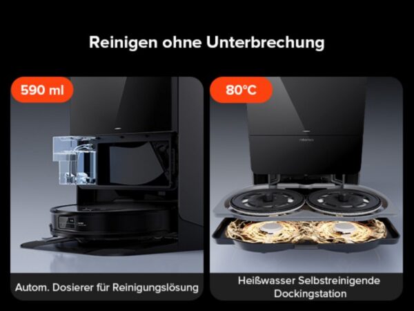 Dieses durchdachte Design bietet im Alltag erhebliche Vorteile. In Haushalten mit vielen Möbeln oder beengten Platzverhältnissen gewährleistet der Saros 10R eine umfassende Reinigung, ohne dass Möbelstücke verschoben werden müssen. Seine Fähigkeit, auch schwer zugängliche Bereiche zu erreichen, sorgt für ein insgesamt saubereres Wohnumfeld und reduzierte unseren Reinigungsaufwand erheblich.