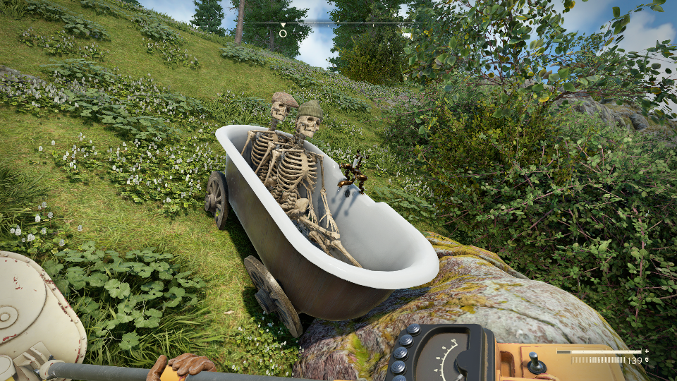 Die Welt von Atomfall ist ganz hübsch anzusehen, aber bedient sich vielen sich wiederholenden Objekten. So sind nicht nur die Gebäude, vielerorts aus der selben Schublade, auch bei den Gegnern fehlt es ein wenig an Vielfallt und könnte ein wenig mehr Abwechslung gebrauchen. Bei den Gegnern beschränkt sich die Auswahl auf Menschen, eine Sorte mutieren Guhls und verschiedene Schwärme, die sich auf Fledermäuse, Fische, Ratten und Stechfliegen begrenzen. Warum kommt uns nicht auch mal ein verstrahltes Reh oder Hund in die Quere, halt etwas, was sich in den Wäldern Großbritanniens herumtreibt? Da die einzelnen Gebiete alle eine überschaubare Größe haben, hätten man vielleicht mit ein wenig mehr Aufwand ein paar mehr Details schaffen können.