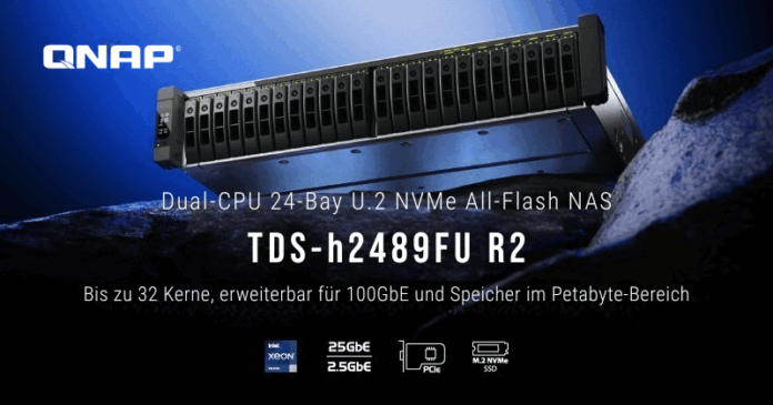 QNAP Systems, Inc., ein führender Innovator von Computer- und Speicherlösungen, hat heute die Einführung seines Flaggschiffs der nächsten Generation, dem 24-Bay U.2 NVMe All-Flash Rackmount NAS TDS-h2489FU R2, bekannt gegeben. Das TSD-h2489FU R2 bietet leistungsstarke und stabile Rechenleistung, robuste Netzwerkanbindung und skalierbare Speicherkapazität – ideal, um den Anforderungen von Unternehmen an hohe Workloads, Multitasking und niedrige Latenz gerecht zu werden, z.B. bei Virtualisierung, High Performance Computing (HPC), Rechenzentren, KI-/ML-Computing, KI-Big-Data-Speicherung und 3D-Rendering.