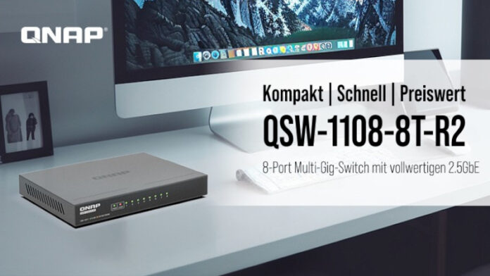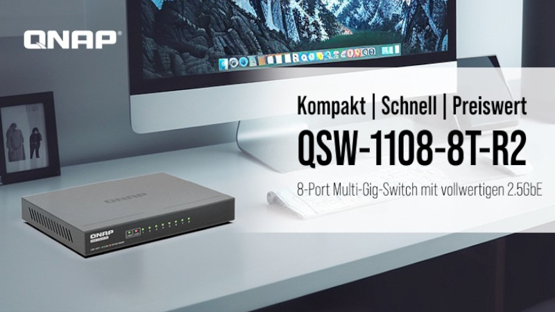 QNAP Systems, Inc., ein führender Innovator von Computer-, Netzwerk- und Speicherlösungen, hat heute den neuen QSW-1108-8T-R2 vorgestellt, einen 8-Port Multi-Gig unmanaged Switch, der eine 2,5GbE High-Speed Verbindung unterstützt. Der QSW-1108-8T-R2 bietet ein reibungsloses und stabiles kabelgebundenes Netzwerk für Wi-Fi 6/6E und verbessert die Dateisicherung, das Streaming von Medien und das Gaming-Erlebnis. Mit einem kompakten, lüfterlosen Design passt er problemlos in jedes Arbeitsumfeld und erleichtert den Aufbau einer effizienten Desktop-Netzwerkumgebung.