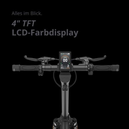 Ein kurzer Blick genügt, und man hat alle wichtigen Informationen im Blick. Das 4-Zoll-TFT-Display des VMAX NEW VX4 ist auch bei direkter Sonneneinstrahlung klar ablesbar. Geschwindigkeit, Akkustand, Distanz und Fahrmodus werden übersichtlich dargestellt – intuitiv und modern.