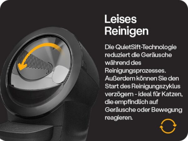 Im Inneren arbeitet eine patentierte Siebtechnologie, die gebrauchte Streu von sauberem Granulat trennt. Das leise QuietSift-System sorgt dabei für nahezu geräuschlose Abläufe – perfekt für ängstliche Tiere oder empfindliche Ohren. Nach jedem Toilettengang rotiert die Trommel sanft, filtert zuverlässig alle Rückstände heraus und hinterlässt eine frische Streuschicht. Diese selbstreinigende Katzen-Toilette von Whisker ist komplett wartungsfrei und spart täglich wertvolle Zeit – ein echtes Upgrade für moderne Katzenhaushalte.