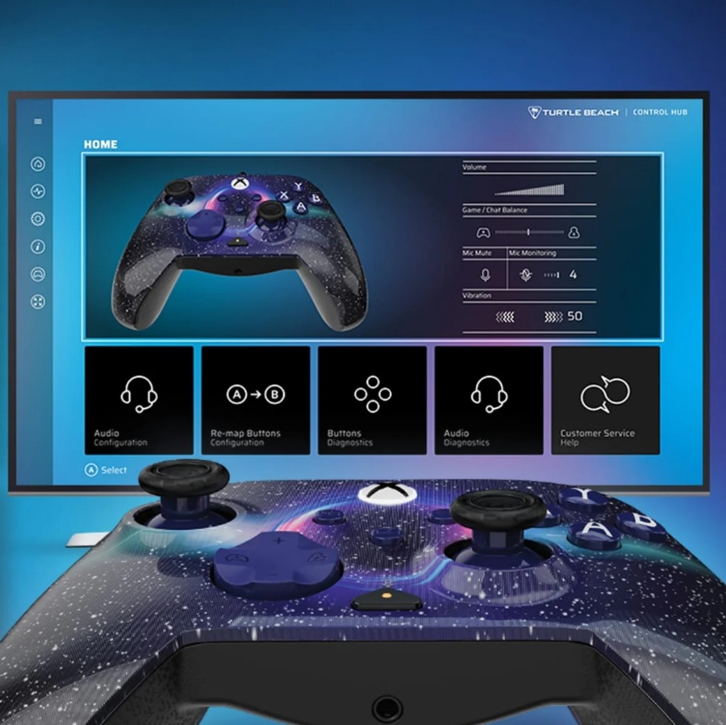 Sehr praktisch fand ich auch die integrierten Audiotasten. Statt erst ins Konsolenmenü zu tauchen, kann ich direkt am Steuerkreuz Lautstärke, Chatmix und Stummschaltung regulieren. Das klingt nach einem kleinen Detail, aber in hitzigen Runden ist es ein echter Komfortgewinn. Und wer – wie ich – häufiger zwischen Headset und Fernseher wechselt, wird das zu schätzen wissen. Darüber hinaus erlaubt die App, die Turtle Beach bereitstellt, erstaunlich feine Anpassungen. Man kann die Deadzones der Sticks verändern, die Reaktionskurven der Auslöser anpassen, Tasten neu mappen und so ein persönliches Profil erstellen, das genau zum eigenen Spielstil passt. Und ja: All diese Einstellungen wurden bei uns absolut verzögerungsfrei umgesetzt, was bei kabelgebundener Nutzung zusätzlich spürbare Vorteile bringt.