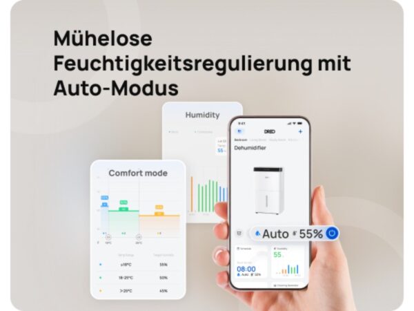 Es zeigt sich schnell, wie praktisch eine App-Steuerung im Alltag sein kann. Bei diesem Entfeuchtungsgerät gelingt die digitale Kontrolle intuitiv und angenehm direkt. Die App bietet Zugriff auf verschiedene Einstellungen, Timer und den aktuellen Feuchtigkeitsstatus – ideal, wenn man unterwegs ist oder mehrere Räume im Blick behalten möchte. Dieses smarte Konzept fügt sich unaufdringlich in moderne Haushalte ein.
