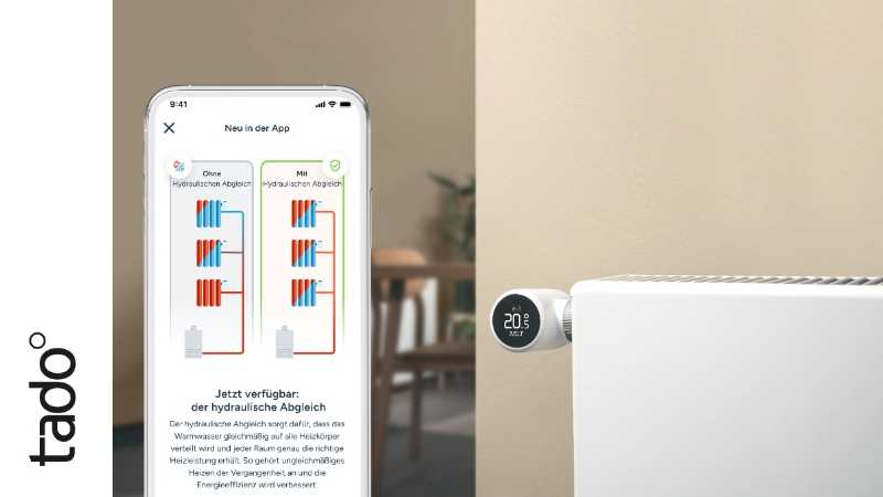 tado°, Europas Marktführer für Energiemanagement für Privathaushalte, bietet ab heute den thermostat-basierten hydraulischen Abgleich an. Diese Funktion ist ab sofort auf allen tado X Thermostaten verfügbar und bietet eine intelligente, softwarebasierte Alternative zum herkömmlichen, aufwändigen Prozess des Abgleichs von Heizungssystemen.