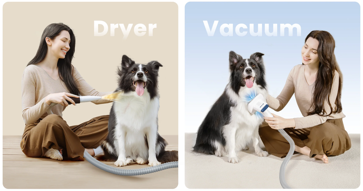 Der Cozy C1 vereint Saugen, Bürsten, Trimmen und Trocknen in einem einzigen System. Während des Bürstens werden lose Haare direkt eingesaugt – sie landen nicht auf Sofa, Teppich oder Kleidung. Das spart Zeit, reduziert Stress für den Hund und sorgt für ein sauberes Zuhause.Besonders praktisch im Winter: Nach einem nassen Spaziergang kann das Fell direkt schonend getrocknet werden, ohne auf laute Föhne oder mehrere Geräte zurückzugreifen.