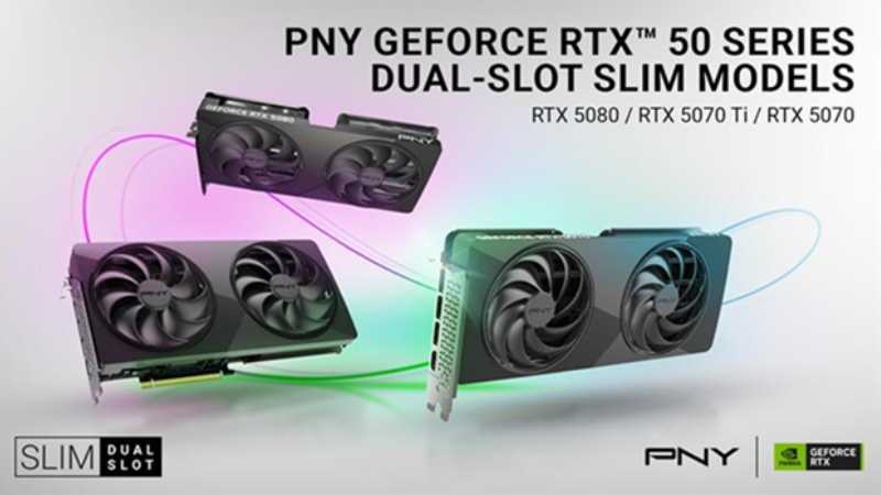 PNY Technologies hat heute die Einführung von drei neuen Slim Modellen der GeForce RTX 50 Serie bekannt gegeben. Die Grafikkarten basieren auf der NVIDIA Blackwell-Architektur und liefern deren vollständige Leistungsmerkmale in einem ultrakompakten Dual-Slot-Design. Die neuen Modelle sind in der RTX 5080, RTX 5070 Ti und RTX 5070 Konfiguration erhältlich und kombinieren hohe Rechenleistung mit einem platzoptimierten Formfaktor für kompakte PC-Konfigurationen.