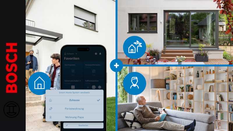 Mit dem neuen zubuchbaren Upgrade Home+ wird die zentrale Steuerung von bis zu drei Bosch Smart Home Systemen in einer einzigen App ermöglicht. Nutzerinnen und Nutzer behalten dank Multi-System-Steuerung jederzeit den Überblick über ihr Zuhause – sei es am Hauptwohnsitz, in der Ferienwohnung, am Zweitwohnsitz oder zur Unterstützung von Angehörigen bei der Bedienung von App und Geräten. So ermöglicht das in allen Bosch Smart Home Systemen aktivierte Alarmsystem, dass Nutzerinnen und Nutzer bei Einbruch, Rauchentwicklung und Wasseraustritt umgehend alarmiert werden und schnell handeln können – auch wenn niemand vor Ort ist.