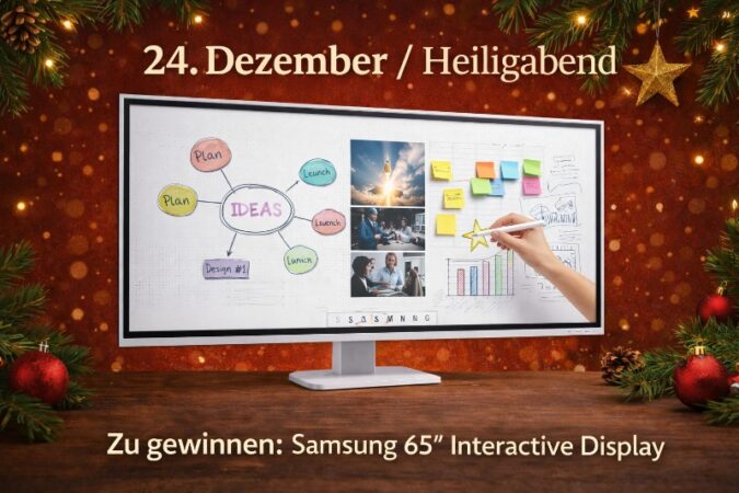 Zum großen Finale unseres Adventskalenders wartet ein außergewöhnliches Highlight auf euch! Heute verlosen wir ein erstklassiges interaktives Display von Samsung, das sich ideal für Zuhause, Büro, Schule oder Kreativräume eignet. Ein Gewinner oder eine Gewinnerin kann sich über dieses großformatige, vielseitige Gerät freuen.